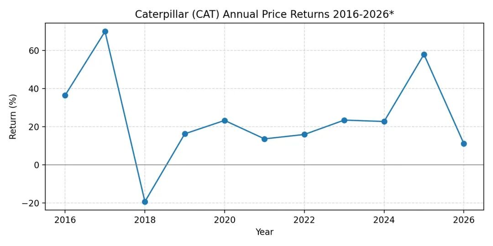 卡特彼勒2016-2026.1年度股价涨跌幅