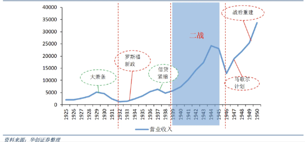 卡特彼勒1925-1950年间营收变化