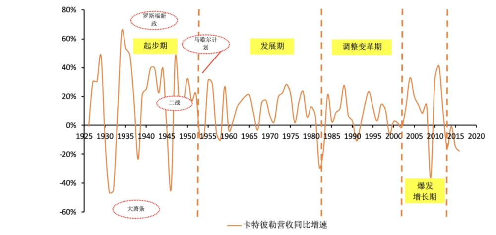 卡特彼勒历史营收同比增速变化(呈现显着周期特征)