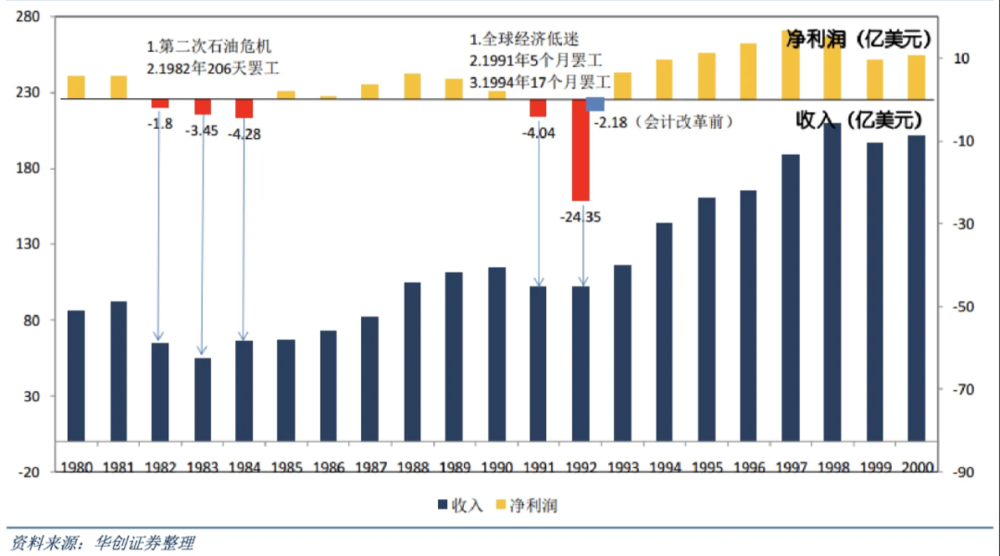 卡特彼勒1980-2000年间营收变化
